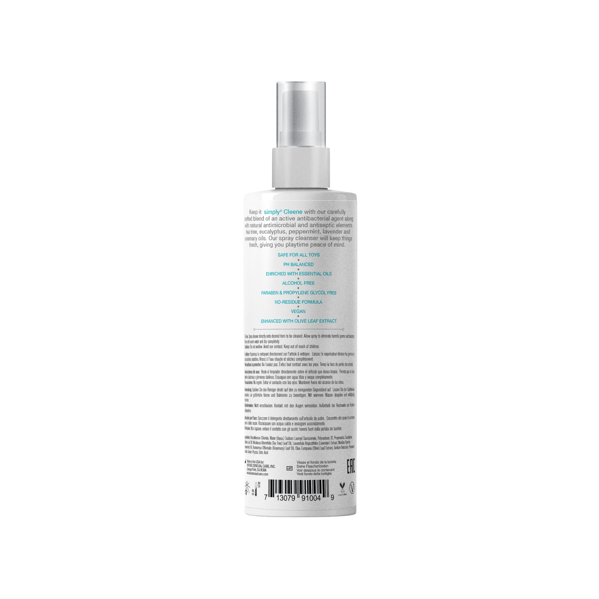 Keep your adult toys clean with simply® Cleene Antibacterial Toy Cleaner. Enhanced with natural lavender and olive leaf extracts to boost antibacterial effectiveness, fragrance-free simply® Cleene is easy to use in a convenient spray bottle, and gives you playtime peace of mind.