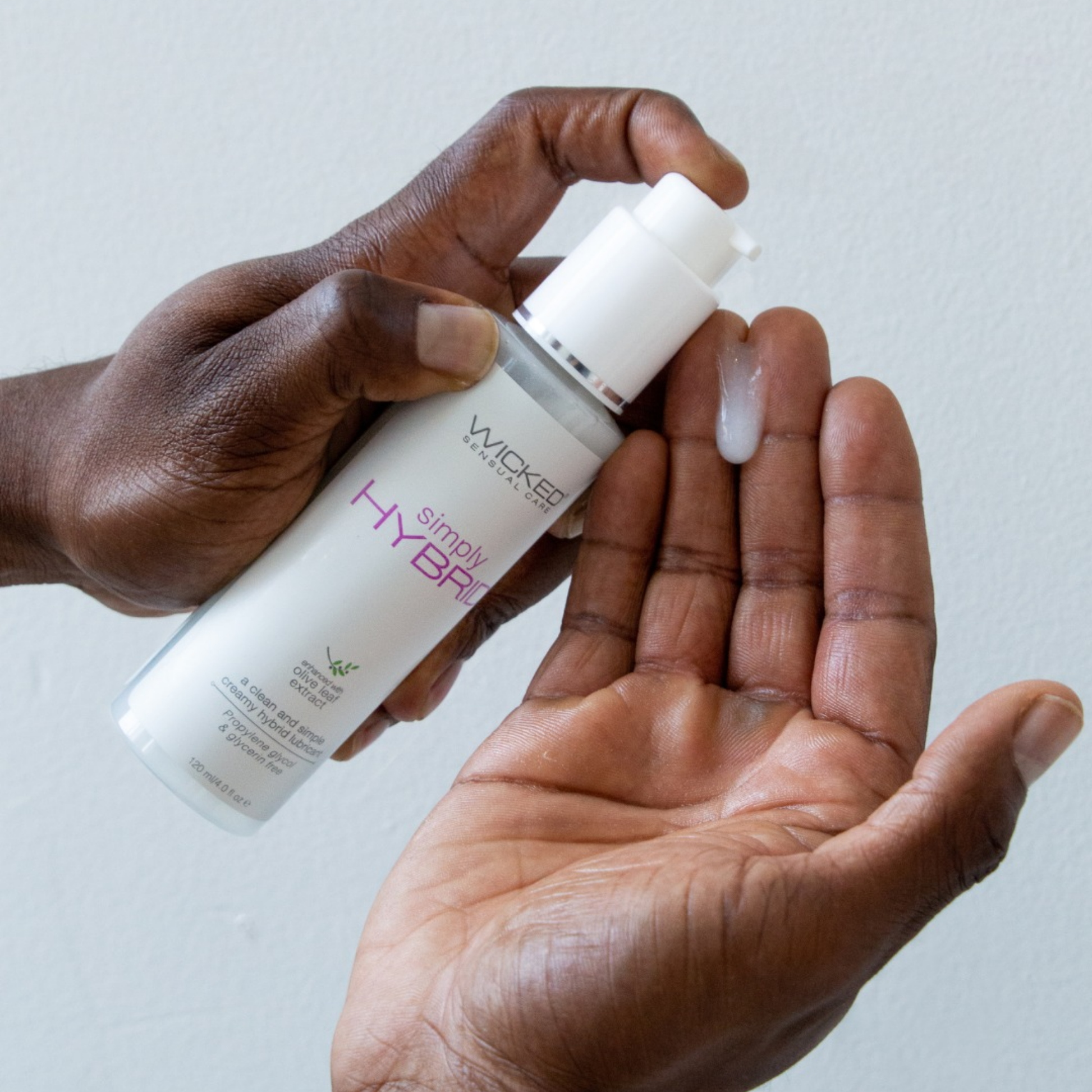 A hybrid unlike any other, simply Hybrid is truly the best of both worlds. Incredibly smooth and long-lasting, this perfectly blended combination of water based and silicone lubricants is free of glycerin, propylene glycol, and parabens. simply™ Hybrid is vegan, cruelty free, and is enhanced with our signature antioxidant-rich Olive Leaf Extract, providing its moisturizing and biostatic properties.